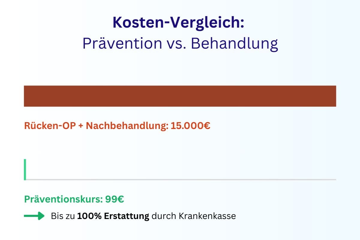 Ein Rücken-OP kostet durchschnittlich zwischen 10.000 und 20.000 Euro, jahrelange Physiotherapie und Medikamente kosten ein Vielfaches eines Präventionskurses.